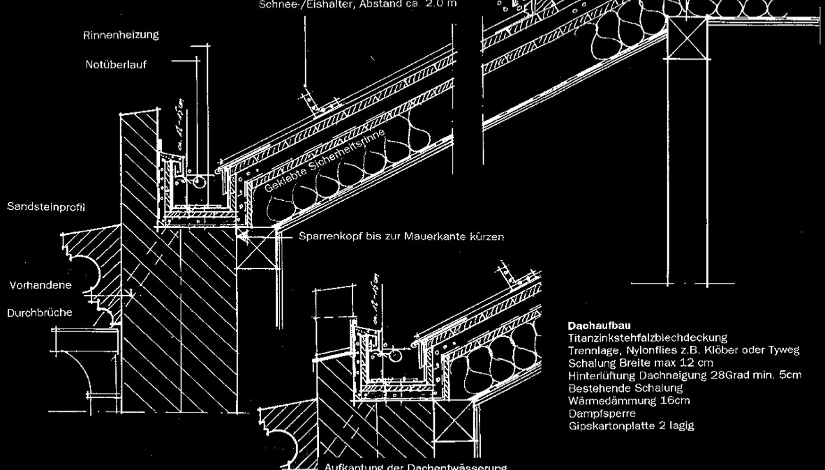 Neben der Sanierung der Gebäudesubstanz wurden im Dachgeschoss konstruktive und gestalterische Veränderungen vorgenommen, um eine Wohnnutzung zu ermöglichen. Insbesondere über zusätzliche Gauben- und Oberlichtkonstruktionen, die in der Gebäudeansicht nicht wahrnehmbar sind, konnte bisher ungenutzter Dachraum für Wohnzwecke nutzbar gemacht werden.