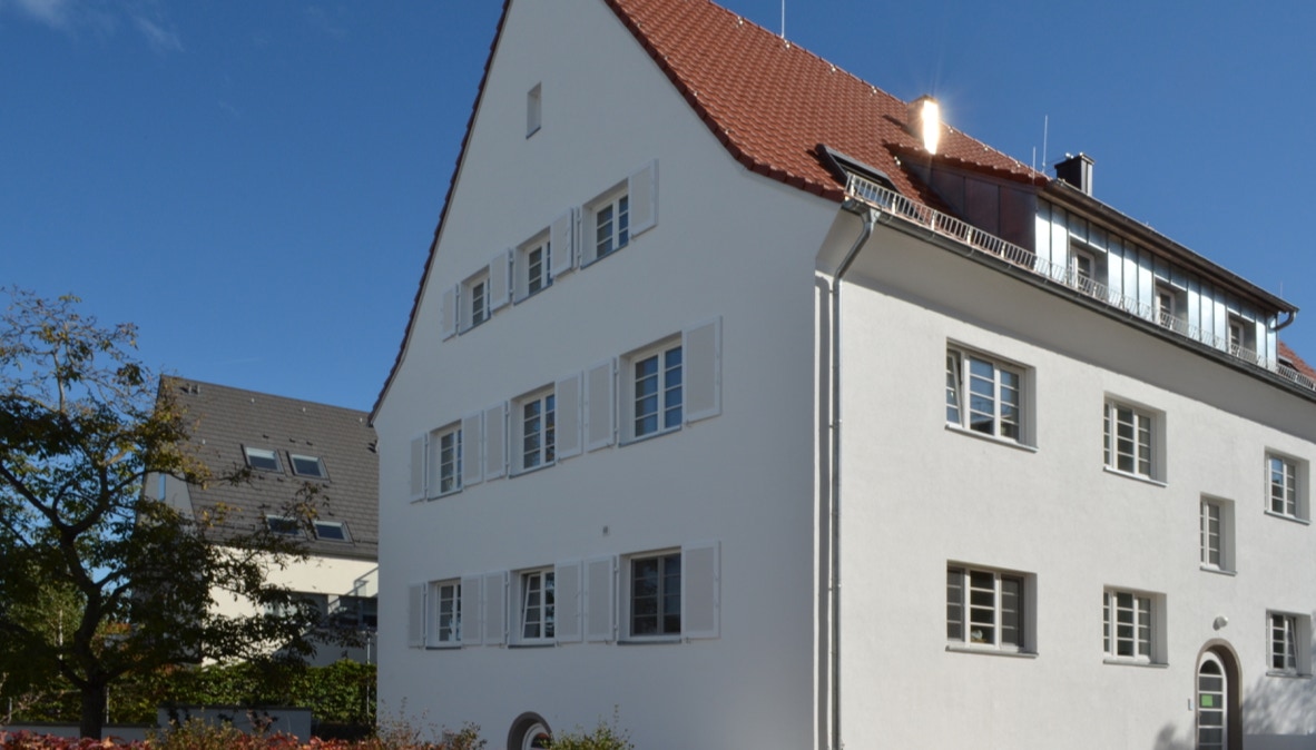 Putzstruktur, Farbgebung, Ausbildung der Dachanschlüsse, sogar die Sprossenteilung der Fenster wurden übernommen, so dass der Charakter des Hauses weitest gehend erhalten blieb.