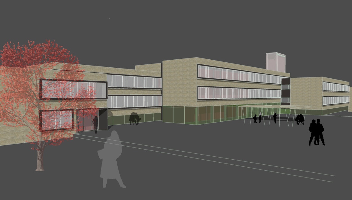 Die Grundidee des Wettbewerbentwurfes ist, die spezifischen Merkmale der Bestandsfassade in das Sanierungskonzept zu übernehmen, formale und technische Unzulänglichkeiten zu beseitigen und auf ein zeitgemäßes Niveau zu heben. Dabei werden nicht nur die technischen Anforderungen seitens der Ausschreibung erfüllt, sondern auch die unklare Einbindung des Gebäudeensembles in das Umfeld behoben.