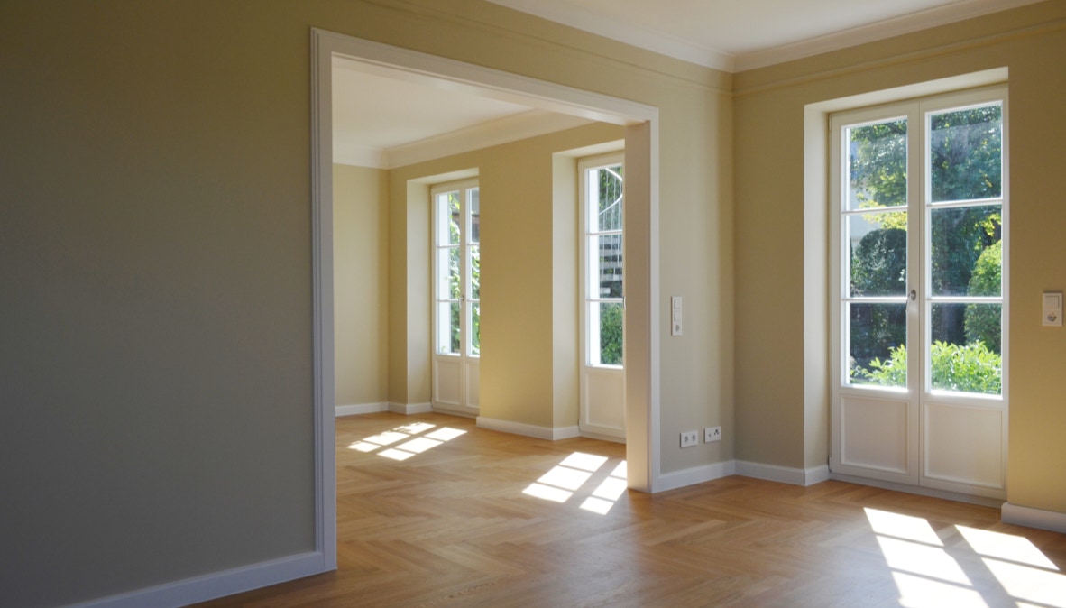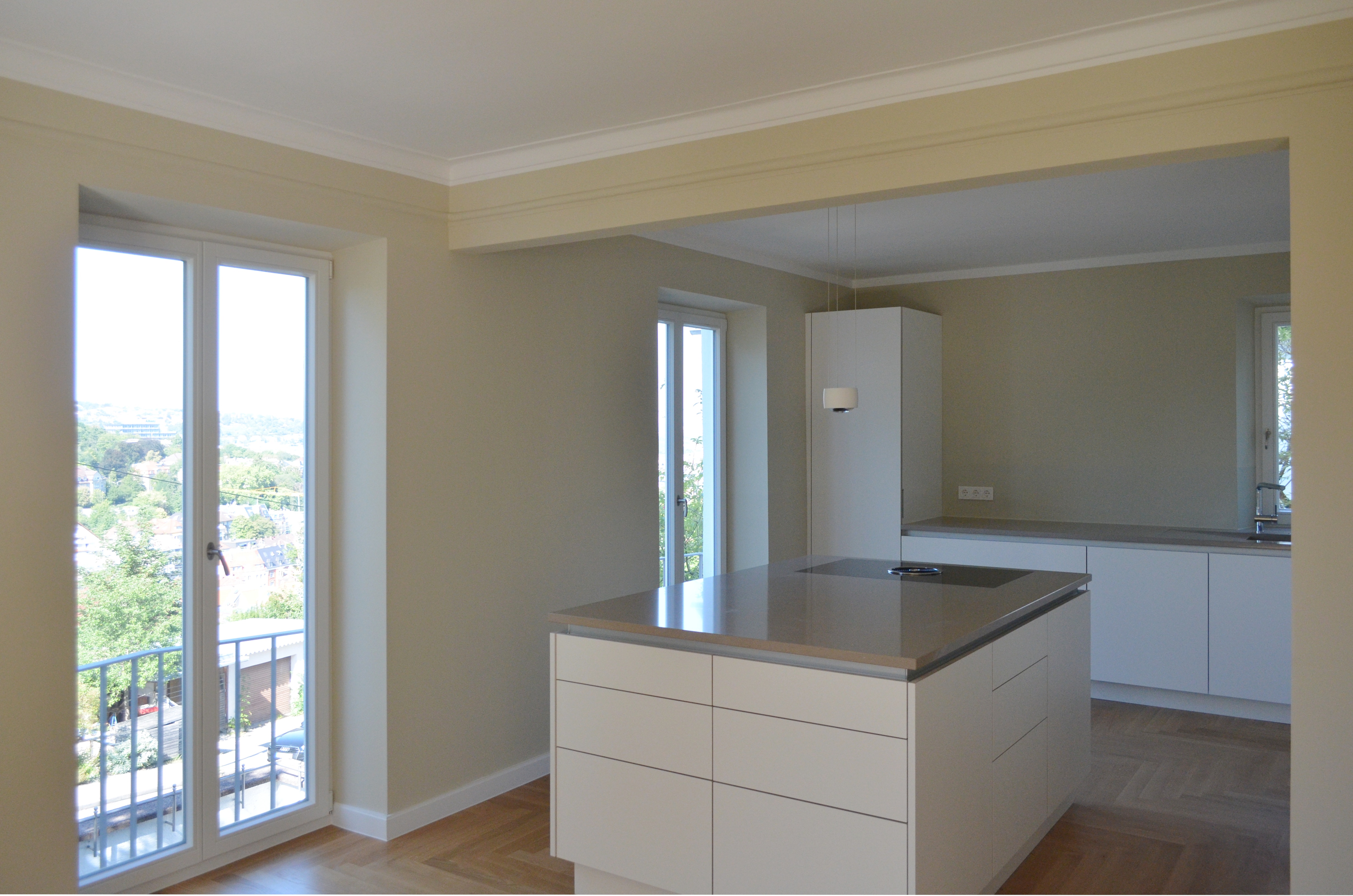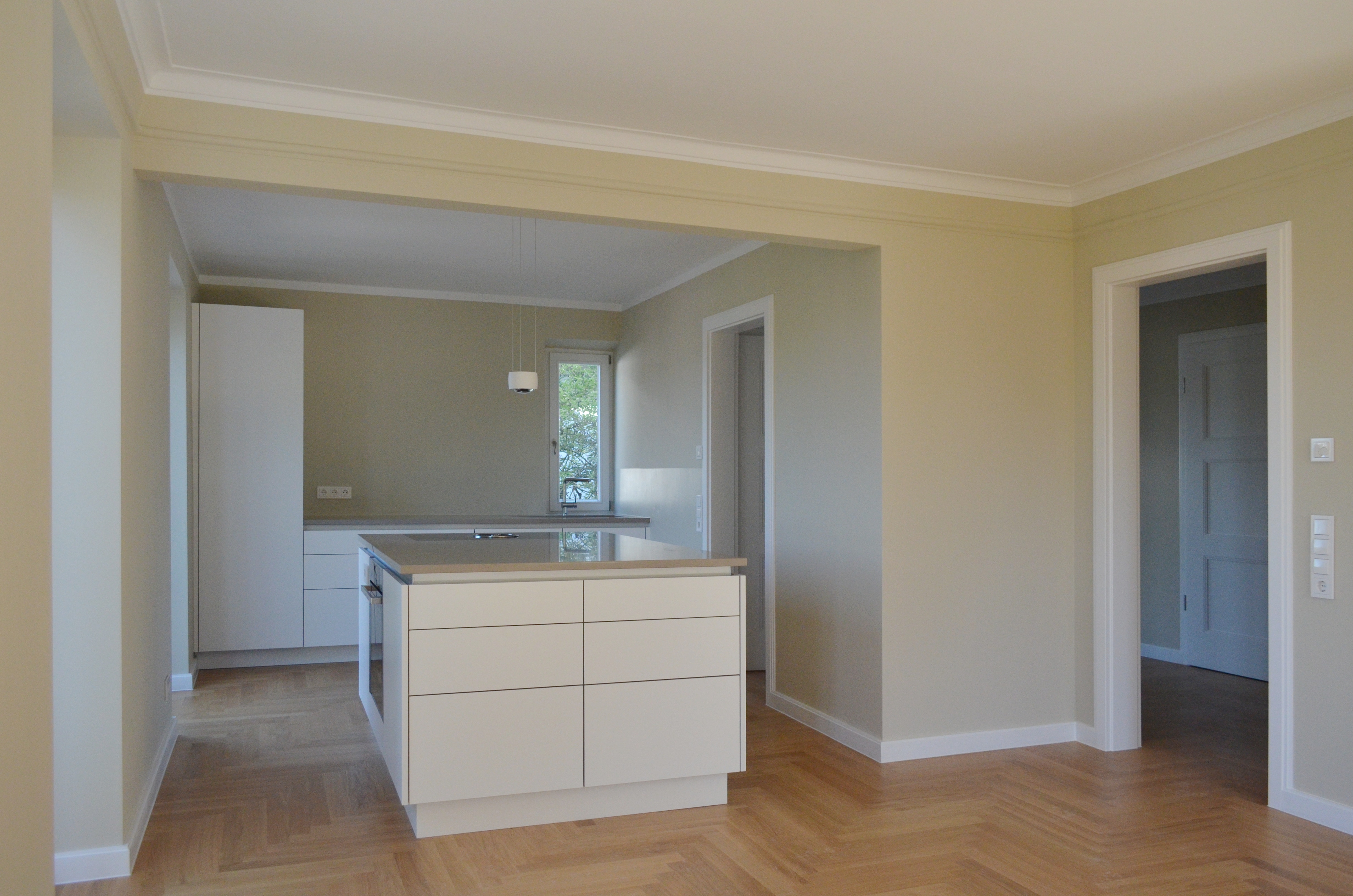 Konstruktion: Fussbodenheizung, Eichenparkett Fischgrät, Holzfenster, Kassettentüren, Natursteinfliesen